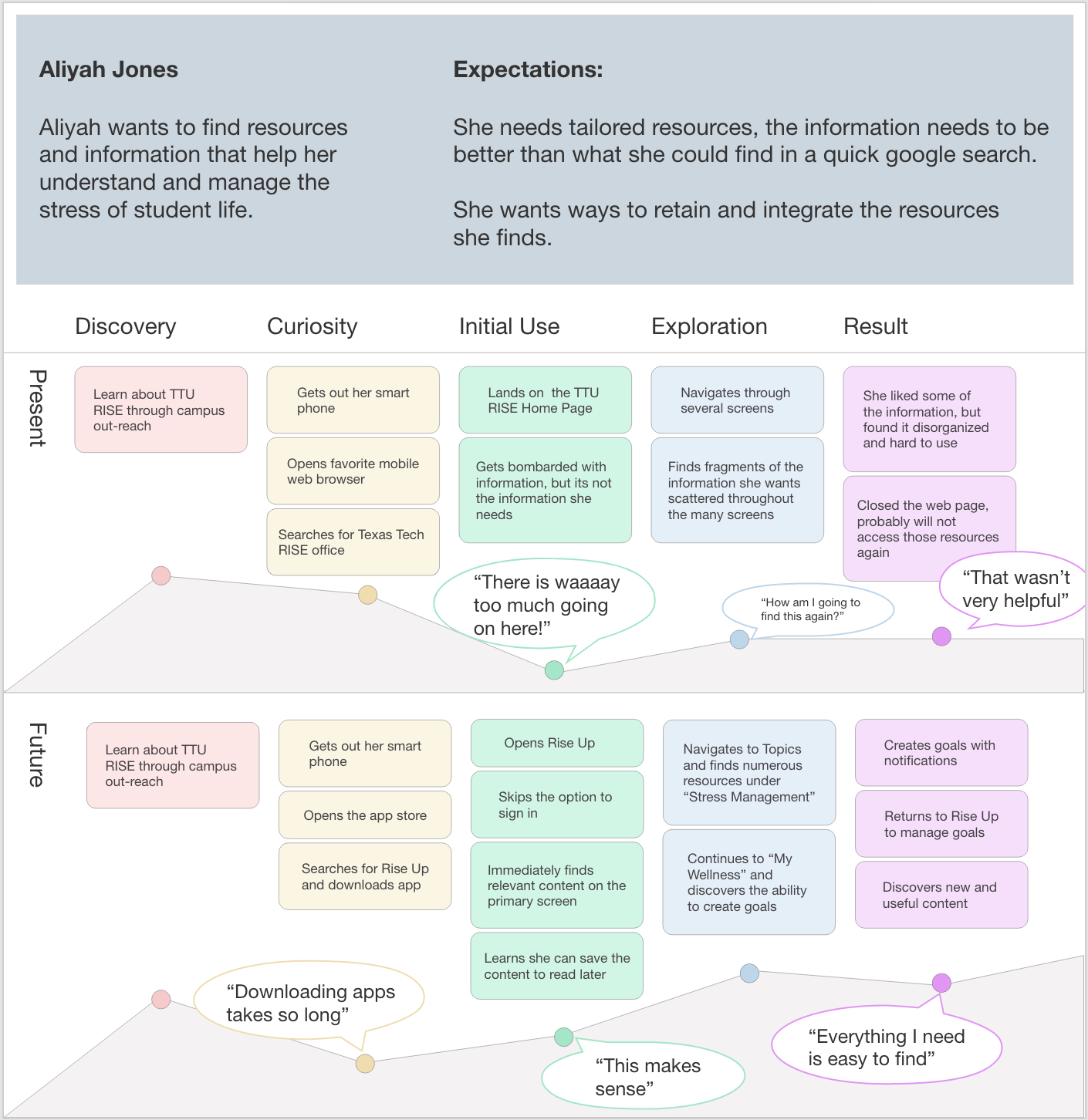 In this project I collaborated with the Risk Intervention and Safety Education (RISE) office at Texas Tech University. The goal is to create a wellness resource for students that also grants them convenient access any important resources or services provided by RISE.